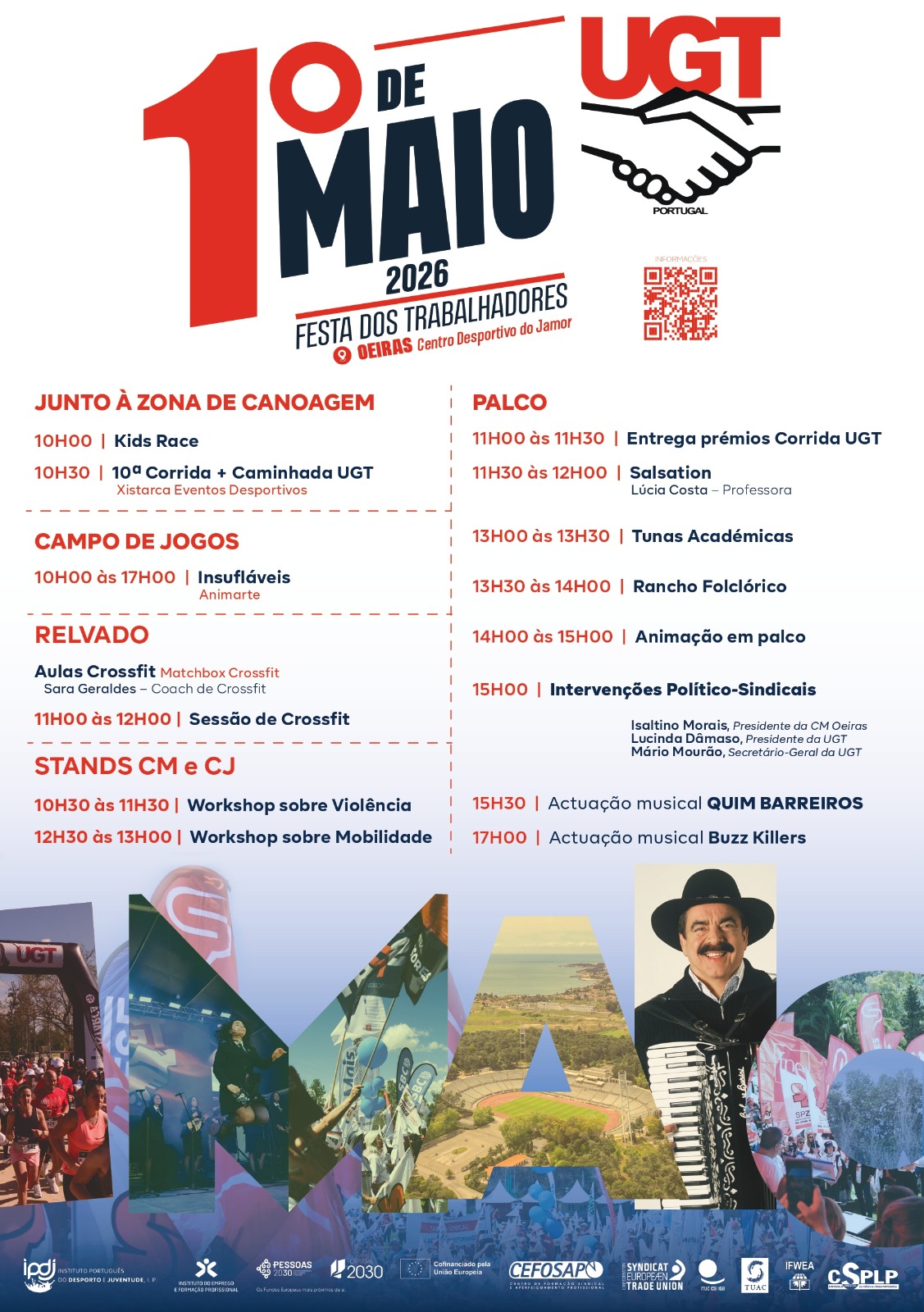 As comemorações do 1º de maio de 2026, organizadas pela UGT ocorrem no Centro Nacional Desportivo do Jamor, em Oeiras.
